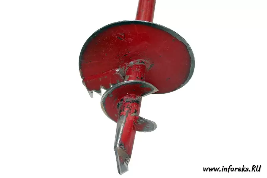Итак, самый дешевый и простой вариант — это обыкновенный садовый бур за 800 — 1000 руб. Он состоит из трех частей: сам бур со шнеком длиной в 1 метр и диаметром в 150 мм., накручивающаяся на него труба-рукоятка и накручивающийся удлинитель (труба в 1 метр). Собранная конструкция из 3-х частей весит порядка 10 кг. и позволяет пробурить яму глубиной до 2-х метров. Продается данный «девайс» практически в любых крупных строительных магазинах (садово-огородные и хозяйственные отделы), либо на строительных рынках. Казалось бы вот оно чудо-устройство, которое позволит самому выполнить любые буровые работы на даче или приусадебном без лишних трат. Однако не спешите радоваться. К сожалению, не все так просто. Если Ваш участок не находится где-нибудь в пустыне и не состоит из сплошного песка, то бурение подобным устройством может быть весьма проблематичным. Приехав на наш среднестатистический глинистый участок, расположенный где-нибудь в средней полосе, и воткнув бур в землю Вас может постигнуть разочарование в его покупке. Попытки проворачивать бур, налегая на него всем телом, не дадут никаких ощутимых результатов. Он просто не будет заглубляться в землю (эффект тупого сверла). Использование трубы удлинителя тоже особых результатов не даст. Просто потратив колоссальные силы и энергию, Вы спустя 15-20 мин. сорвав руки и заработав мозоли, углубитесь в землю буквально на 15-20 см. В чем же дело? Почему бур не работает и не «сверлит» землю?