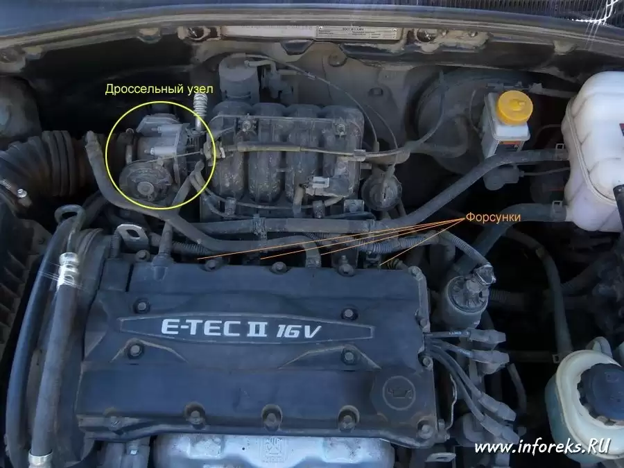 В интернете встречается много информации по этой теме, в которой люди делятся своим опытом и секретами, обсуждают, например, как в дальнейшем делать калибровку дроссельной заслонки после ее снятия и чистки, где купить кабель ОБД2 и скачать программу Шевроле Эксплорер и т.п. Так что оригинальным я скорее всего не стану 🙂 но, возможно мой небольшой фотоотчет окажется для кого-нибудь полезным. О том какие плюсы дает чистка ДУ и форсунок — демагогию разводить не стану. Процедуру чистки выполнял не от того, что с машиной стали наблюдаться какие-либо проблемы, а скорее больше для профилактики и успокоения совести. Хуже от этого не будет, а вот о скопившимся нагаре в ДУ и что становится с форсунками от нашего бензина — представление имею. Итак, начнем.