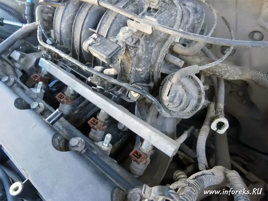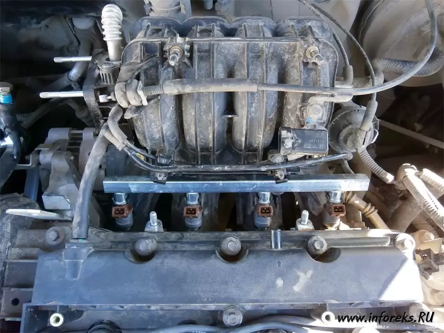 Чистку дроссельного узла мы завершили, откладываем его в сторонку, чтобы не мешался и идем дальше. Следующая цель — это чистка форсунок Chevrolet Lacetti.