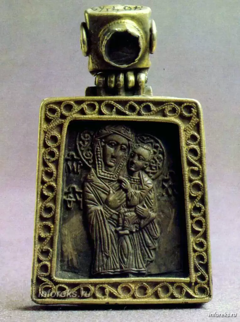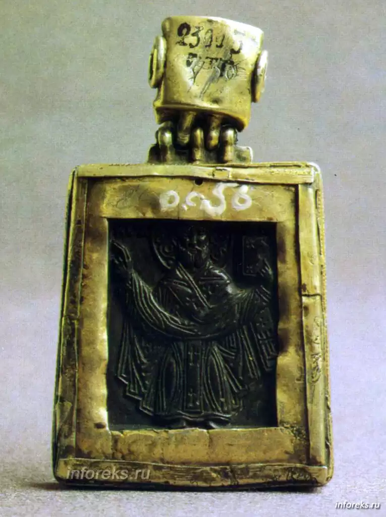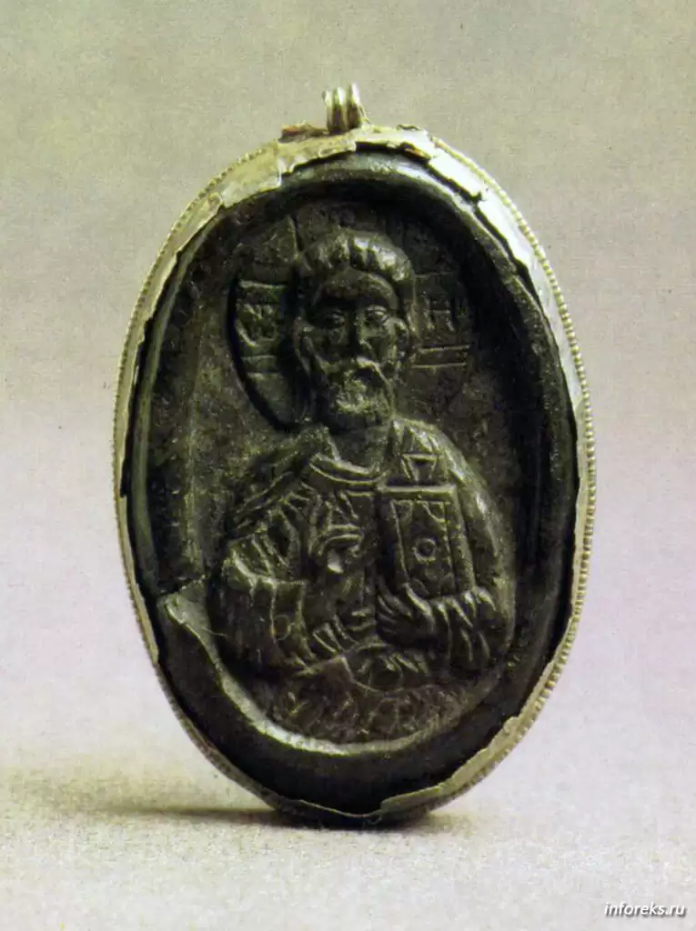 В Загорском музее находятся две сохранившиеся иконки мелкой пластики из Рязани (XIV в.) на камне и на шифере: „Христос» и „Св.Борис и Глеб» (на обороте св. Федор, Николай и Григорий). Это — попытка возродить технические навыки и школу ремесла начала XIII века. Но без порыва вдохновения, присущего подлинному искусству. Впрочем, мастер в первой иконе, как бы продолжая стремление рязанской школы XII — первой половины XIII века к реализму, отходит от канонических „изводов» и изображает фигуру и лик Христа просто и выразительно.