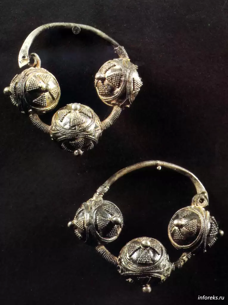 Заслуживает внимания один из последних найденных кладов 1966 года (во дворе бывшей воеводской усадьбы Старой Рязани). Он был, вероятно, поспешно зарыт, как и клад 1822 года, в шестой день осады города ордами Батыя. В нем среди прочих ценных вещей особенно значительны серебряные рязанской работы браслеты-наручи, которыми женщины охватывали края длинных рукавов платья. На пластинах наручей на фоне черни размещены разделенные рубчатой золоченой проволокой гравированные изображения гусляра, скомороха с флейтой, пьющего вино, и танцовщицы, а в мелких делениях — птицы, фантастические животные, растительный орнамент. Ясность, совершенство рисунка, точность гравировки, общий декоративный эффект в этих наручах выше, чем на аналогичных, найденных в Киеве и других местах. Это говорит о том, что гравирование по металлу достигло в то время высокого уровня.
