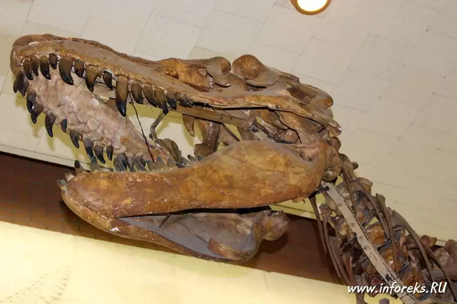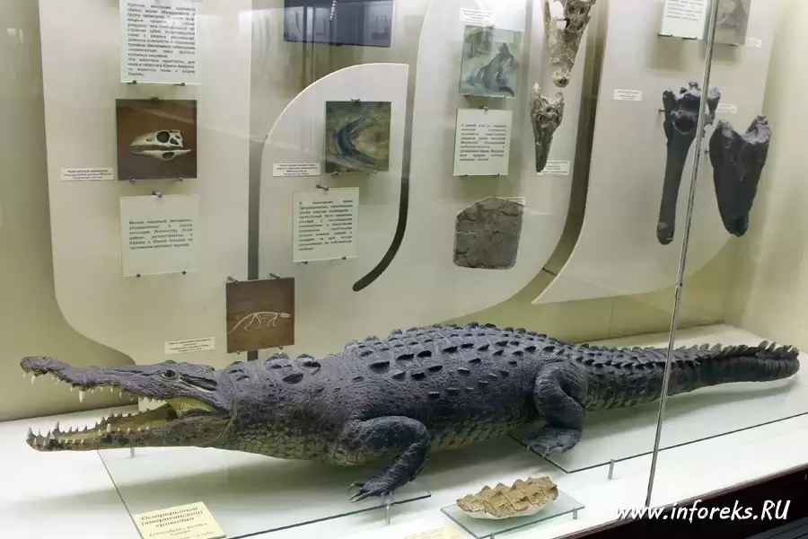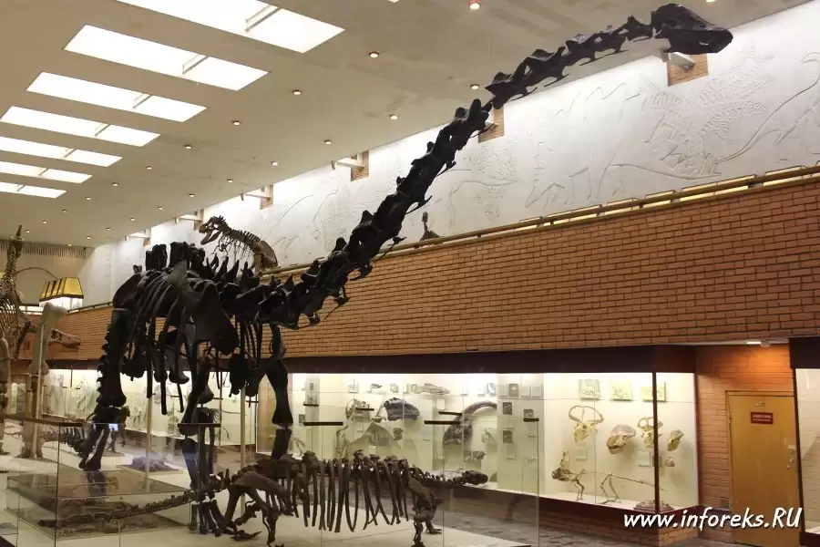 Свое начало, так сказать — корни, музей берет с Кунсткамеры Петра I, основанной в 1716 г., в которую по приказу царя со всей России свозились всякие интересные и необычные вещи, в том числе кости, черепа и зубы млекопитающих ледникового периода, а также другие диковинные находки. История развития палеонтологического музея достаточно интересна. Пересказывать я ее не буду, так как есть сайт музея, где изложены все важные события из жизни музея, этапы его развития. Единственно, хотел бы отметить — бесценность большинства его экспонатов. Об этом говорит тот факт, что во время Великой Отечественной войны значительная часть коллекций музея была эвакуирована в Казахстан, в Алма-Ату. Со времени своего основания музей не раз перестраивался и расширялся. Многолетние экспедиции и раскопки, проводившиеся сотрудниками Института на территории бывшего СССР, Китая, Монголии и других стран позволили собрать богатейшие и уникальные коллекции палеонтологического материала.