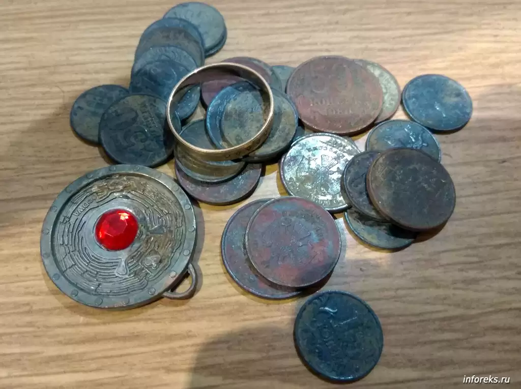 Еще упомяну один момент про коп на деревенских пляжах. Чтобы не портить себе карму и не стать врагом местных жителей рекомендую закапывать за собой ямки. Вряд ли местным понравится перекопанная полянка на берегу любимого пруда (выглядит как поверхность луны). Выкопанные пробки, банки, разбитые бутылки, гвозди, саморезы, фольгу и прочий мусор всегда складываю в заранее приготовленный пакет, который после выкидываю в ближайшую мусорку. Ямки разумеется закапываю. Бывало подходили местные рыбаки. Сначала настороженно так интересовались чем я мол тут таким занимаюсь. Говорил, что ищу ходячку и потеряшки, попутно чищу место от мусора (особенно от колото-режущих предметов). Показывал на пакет и сразу завоевывал к себе расположение. Часто местные даже рассказывали про свою деревню и окрестности — что и где когда-то тут было и в каких местах мне стоит походить с МД.