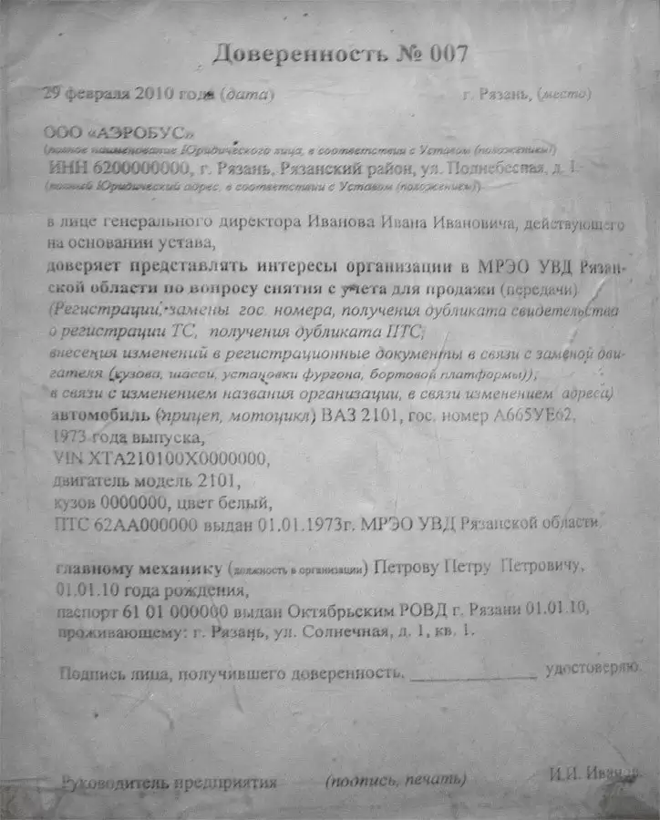 P/S: Как оказалось — выписка из ЕГРЮЛ не нужна (зря ее только заказывали, а многие уверяли, что без нее в ГАИ делать нечего)! При попытке ее предоставить инспектору в окошко вместе с другими документами – она вылетела обратно. Та же участь постигла и копию Устава организации. Все ксерокопии документов обязательно должны быть заверены печатью организации и подписью ее руководителя (Копия верна. Директор ООО «Рога и копыта» Иванов И.И.)