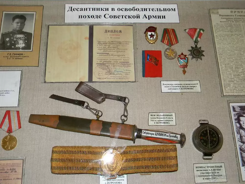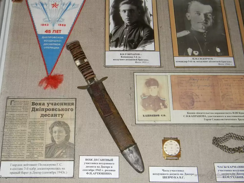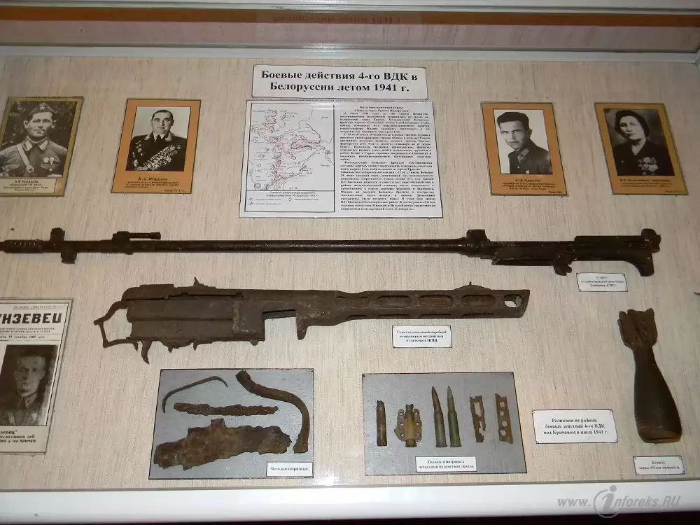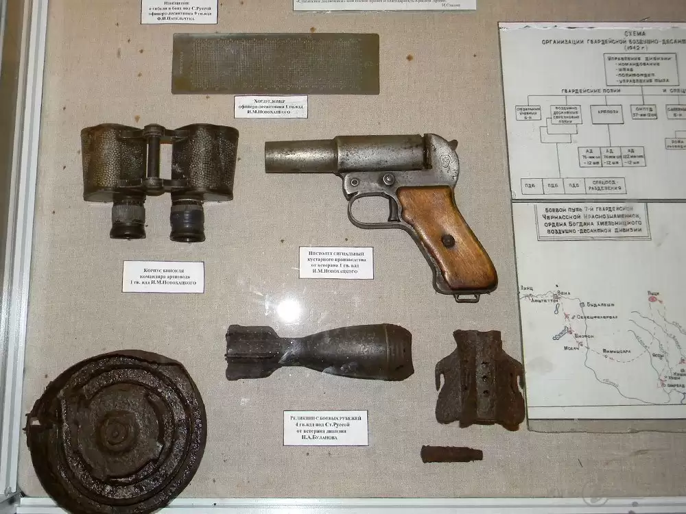 Сам я последний раз посещал Рязанский музей ВДВ очень давно, будучи школьником в середине 80-х годов прошлого века. Однако помню, что тогда экспозиции были побогаче и оружием, и техникой. В экспозициях времен Великой Отечественной войны тогда было представлено много как нашего стрелкового оружия (автоматы, пулеметы, снайперки и т.д.), так и трофейного — немецкого. Были также и немецкие награды, кортики, ножи. Сейчас все это куда-то исчезло или «переехало» и ничего из оружия той эпохи в музее практически не осталось. Из современного стрелкового оружия, в т.ч. специального — тоже ничего не представлено.