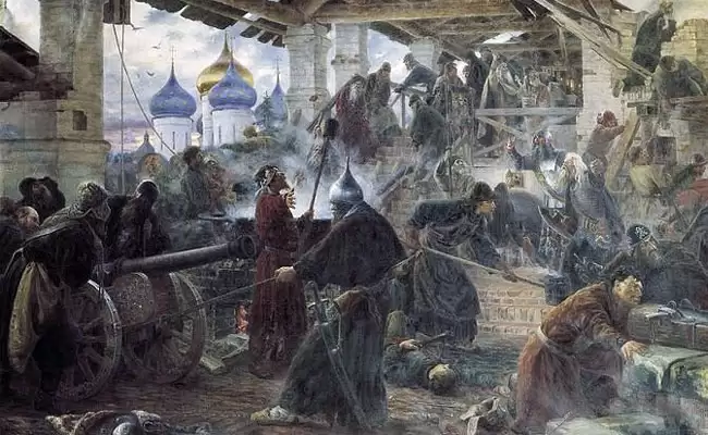 На престол бояре возвели Василия Шуйского с наказом помнить, кем он поставлен царем Руси, за что и получил в народе прозвание «боярский царь». А вместе с прозванием — и новую волну народного гнева. Бывший господский холоп Болотников собрал в северской Украйне великое войско из казацкой вольницы и двинулся с ним на Московию. По пути к его рати присоединялись обиженные крепостниками крестьяне. Влилась в войско Болотникова и рязанская рать из дворян во главе с Прокопием Ляпуновым. Мелкопоместные дворяне, как и крестьяне, усмотрели в записи бояр ущемлен ие своих прав и приметили в Болотникове своего защитника. Но рязанцы вскоре разочаровались в этом походе. На боярского царя шли не только обиженные им земледельцы, но и отъявленные разбойники, которые подбивали грабить и жечь дворянские усадьбы. Под отблеск пожарищ ляпуновцы покинули это пестрое войско, а предводитель — Прокопий Ляпунов — помирился с царем, за что получил от него чин думного дворянина.