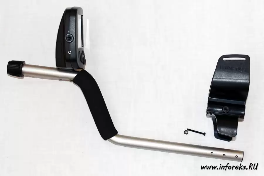 По большому счету, упаковка нас и не интересует. Главное ее содержание. На коробке в названии модели металлоискателя есть буквы SKD. Это вроде как значит, что прибор поступает в Россию в виде конструктора и за счет этого облагается меньшими таможенными пошлинами. Отсюда и такая привлекательная цена — 11220 руб. Внутри коробки — блок управления, S-образная штанга с подлокотником, две средние штанги, катушка DD 11″, два хомутика из липучки, инструкция на английском языке, на русском не оказалось (возможно просто забыл ее в магазине, что в общем и не критично, т.к. ее свободно можно найти в интернете и скачать), какие-то листочки-рекламки от производителя. Не буду подробно пересказывать все удобства конструкции, что и как крепится, отсутствие люфтов и т.п. Если кому интересно то все подробности и характеристики есть на сайте teknetics-rus.com. С информацией по вышеуказанной ссылке я полностью согласен. Прибор действительно очень удобный и очень легкий (1 кг.). Безусловно, понравилась возможность регулировки штаги и подлокотника под рост ребенка.