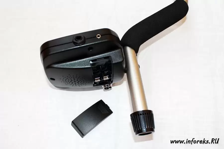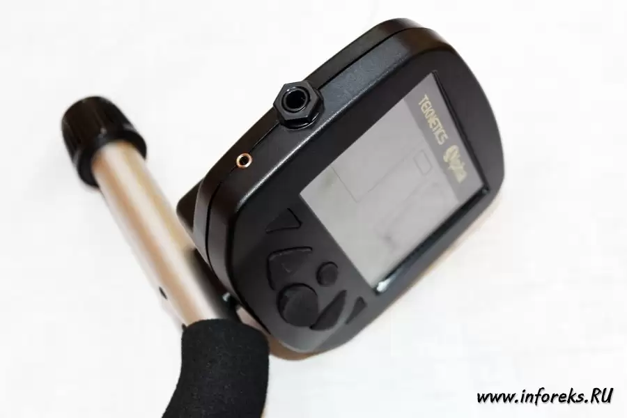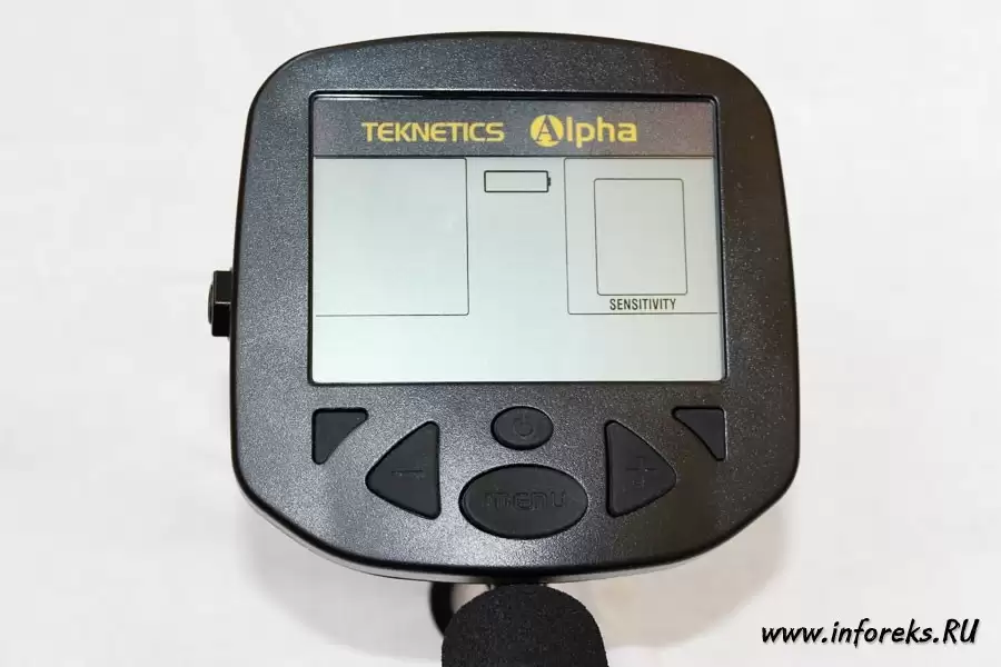 Прибор питается всего лишь от одной 9 В батарейки типа «Крона», в отличие, например, от Garrett ACE 250 или Fisher F2, что достаточно удобно и экономично. Еще понравилось то, что в приборе есть регулировка громкости. При высвеченной опции VOLUME (Громкость) кнопками «+», «-» можно изменить громкость звукового сигнала. Минимальный уровень громкости – 0 (звук отключён), максимальная – 9. В Teknetics Alpha 2000 предусмотрена возможность работы в наушниках. На блоке управления есть сразу два штекера — 1/8″ и обычный 1/4″. Поэтому подойдут любые наушники, в т.ч. и самые обычные наушники от плеера.