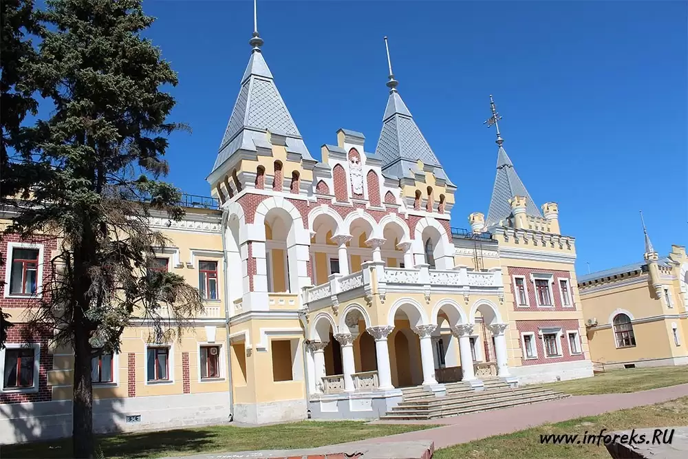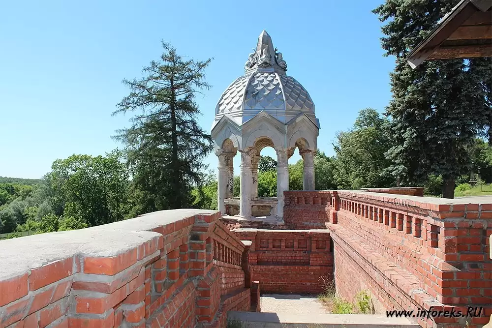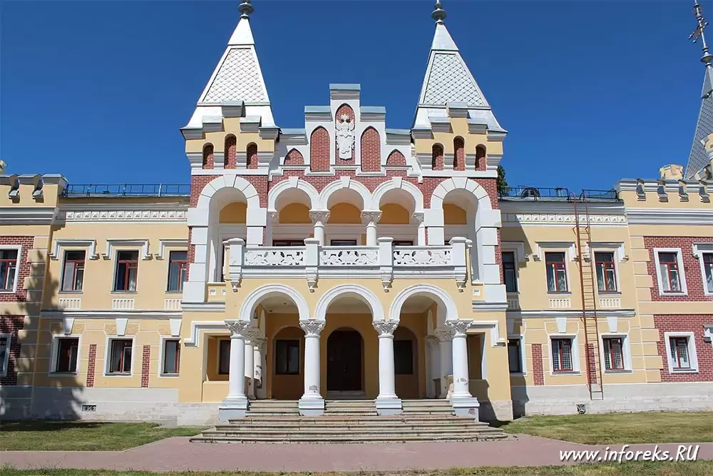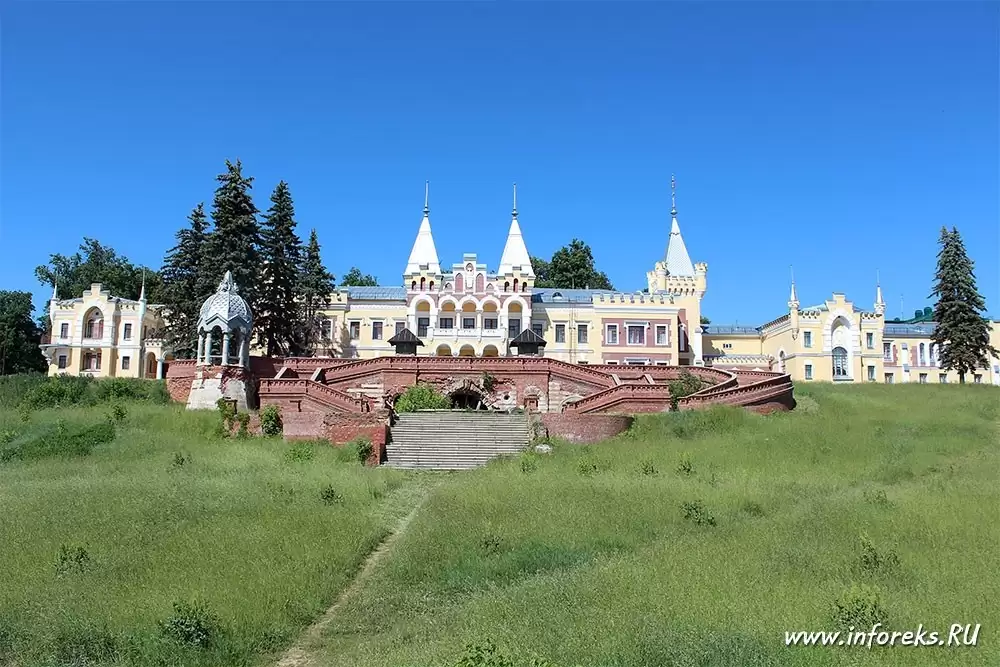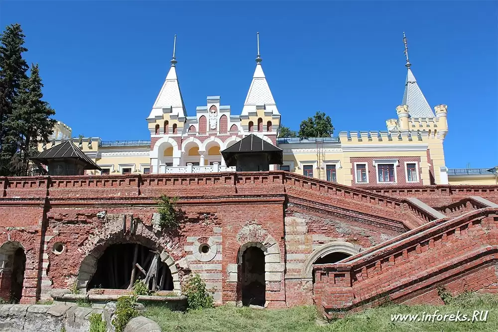 На правом берегу реки Прони в селе Кирицы расположено одно из интересных и старинных мест Рязанской области — имение барона Сергея Павловича фон Дервиза. Главное чудо усадьбы фон Дервиза – красивый дворец, возведенный в 1887-1989 годах архитектором Шехтелем. Каменные лестницы, башни и беседки усиливает эмоциональное впечатление от архитектуры дома, но еще более ошеломляющим кажется полу обрушившийся арочный мост, устроенный в глубоком овраге в непосредственной близости от дома. Усадьба фон Дервиза — архитектурно совмещает несколько стилей — готический, псевдоготический, мавританский, русско-классический и др. Все это в совокупности очень впечатляет и очередной раз доказывает, что рязанская земля богата своей историей и интересными красивыми местами…