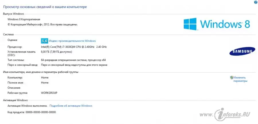 Здесь я удалил все строки и вместо мужика с лошадью вставил логотип производителя Samsung. Вот как теперь стало выглядеть окно основных сведений о компьютере: